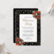 Elegant black and gold Christmas party invitation featuring gold confetti, flowers and Christmas ornaments. Easily personalize this invitation with your party details.