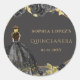 Elegant Black Gold Floral Princess Quinceanera Runder Aufkleber