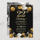 Elegant Black Gold Glitter 22nd Birthday Photo Einladung
