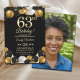 Elegant Black Gold Glitter 63rd Birthday Photo Einladung