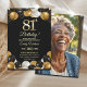 Elegant Black Gold Glitter 81st Birthday Photo Einladung