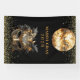 Modern Mardi Gras masquerade party banner, featuring gold and black balloons, and gold glitter. Elegant and festive.