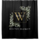 Elegant Black Gold Monogram Eukalyptus Greenery Duschvorhang