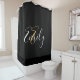Moderne elegante Black Gold Monogram Script Name Chic Duschvorhang für sie. Mit Monogramm Initial und Name. Zeitgenössische Schriftzeichen. Gold schwarz und weiß. Ändern Sie die Farbe oder Textfarbe leicht. Trendy Glam Geschenk für sie für Frauen. Suchen Sie nach passenden mit Monogramm Küchen- und Essaccessoires wie Untersetzer, Stoffserien, Stoffservietten und Küchentücher, und passen Sie auch zu den mit Monogramm Namen Erstausstattung der Badezimmer wie Badetücher, Duschvorhang, Badematte. Vergessen Sie nicht, den Duschvorleger in Ihren Warenkorb zu legen! Step by Step Inspiration Series exklusiv auf Zazzle unter zazzle.com/store/KrisHarty erhältlich, entwickelt von Kris Harty, einem internationalen Designer. © 2022 Kris Harty Step by Step Inspiration