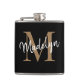 Elegant Black Gold Monogram Stylish Script Name Flachmann