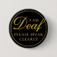 Elegant Black Gold Script Speak eindeutig Deaf Button