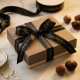 Elevate your brand with this elegant black and gold script satin ribbon. Designed for luxury chocolate packaging, it is the perfect choice for artisan chocolatiers, gourmet confectioneries, and upscale pastry shops seeking a professional identity. Use this high-quality typography ribbon to wrap signature boxes, create refined gift sets, and provide a sophisticated touch to your artisan creations.
