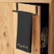 Custom Typography Script Name Upload Photo or Logo Text Elegant Modern Sleek Black And Gold Kitchen & Dining / Table & Kitchen Linens/ Personalized Template Calligraphy Gold Name Black Kitchen Towel.