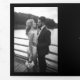 Elegant vintage black and cream ivory photo overlay monogrammed tri fold all in one wedding invitation with QR code to website to RSVP online. ++++++++++ Suitable for classic formal timeless vintage old money style trendy weddings.