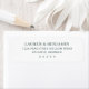 This return address label features a clean, minimalist design with centered text on a white background. The classic serif font adds an elegant touch, while the black and white color palette ensures readability and sophistication. Perfect for personalizing your mail, this label combines simplicity with style, making it ideal for formal correspondence or special occasions. Its straightforward layout emphasizes clarity, ensuring your information stands out effortlessly.