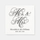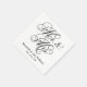 Hochzeitsnapkins spielen "Mr. & Mrs." in einem schwarzen Kalligraphieskript-Schriftart mit individuellem Monogramm-Design, das mit dem verheirateten Namen der Braut und des Bräutigams und dem Hochzeitstermin personalisiert werden kann. Schwarz-Weiß-Farbschema