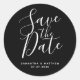 Eleganter Schwarz Save the Date Wedding Classic Round Sticker