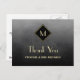 Mit dieser eleganten und stilvollen, schwarzen und goldenen monogramm Hochzeit bedanken Sie sich herzlich für die Postcard. Dieses schlichte und raffinierte Gestaltungskonzept mit gebürstetem Farbverlauf mit einem modernen, rautenförmigen Rahmen kann personalisiert werden, indem man den mit Monogramm Anfang der Braut und des Bräutigams sowie eine personalisierte Botschaft hinzufügt. Flachbild, NICHT metallisch.