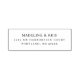 This elegant rubber stamp features a clean, minimalist design with ample negative space, creating a sophisticated and uncluttered appearance. The layout centers on crisp, uppercase serif typography that conveys formality and tradition, making it ideal for official or ceremonial purposes. With its black text on a white background, the color palette emphasizes clarity and readability. Perfect for personalizing documents with names and addresses, this stamp combines functionality with understated elegance, suitable for any occasion requiring a polished touch.