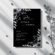 This sophisticated wedding invitation features striking hand-drawn floral illustrations in a timeless black and white palette. Delicate botanical details frame the layout, creating a refined balance between dramatic contrast and soft organic linework. The deep black background enhances the crisp white typography, blending modern elegance with classic fine-art styling. Perfect for formal, modern, minimalist, or evening weddings, this design delivers a luxurious editorial feel that prints beautifully on premium paper.