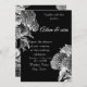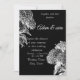 Elegant black and white floral wedding invitation featuring a timeless botanical frame on a deep black background.