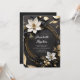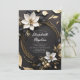 Elegant Black White Gold Floral Wreath Wedding Einladung