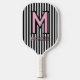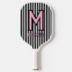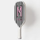 Elegant Black& White Stripes Pink Script Monogram Pickleball Schläger