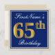 Elegant, blau, Imitat-Gold65. Geburtstag + Name Einladung