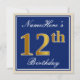 Elegant, Blau, Imitate Gold 12. Geburtstag + Name Einladung