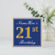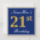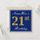 Elegant, blau, Imitate Gold 21. Geburtstag + Name Einladung