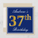 Elegant, blau, Imitate Gold 37. Geburtstag + Name Einladung