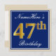 Elegant, blau, Imitate Gold 47. Geburtstag + Name Einladung
