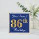 Elegant, blau, Imitate Gold 86. Geburtstag + Name Einladung