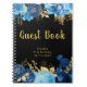 Elegant Blue and Gold Flowers Birthday Guest Book Notizblock