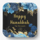 Elegant Blue and Gold Flowers Hanukkah Party Pappteller