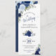 Diese schöne Hochzeitseinladung zeigt ein rustikales boho chic-Design mit handgemalten Aquarellfarben-Rose in staubblauen, indigofarbenen und marinierten Tönen. Das stilvolle Design mit eleganter Skriptkalligraphie und einem hohen Porträtlayout lädt zum unvergesslichen und einzigartigen Erlebnis ein. Auf der Rückseite finden Sie einen Abschnitt mit Informationen über Hotelblock, Empfang, Website, Anfahrtsbeschreibung oder alle anderen Informationen, die Ihre Gäste benötigen, einschließlich eines individuellen QR-Codes, der es Ihren Gästen erleichtern soll, UAWG zu machen oder online mehr Informationen zu erhalten. Ein wunderbarer Weg, um Ihre Freunde und Familie einzuladen, um an Ihrem besonderen Tag an Ihrer Freude teilzunehmen!