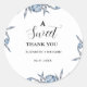 Elegant Blue Botanical Sweet Danke Party Runder Aufkleber