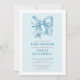 Ein niedliches und klassisches Blue Bogen Babyduschthema mit einem bezaubernden Baby-Blue Wasserbogen, der mit einem hellblauen Hintergrund vermischt ist. Eine Mischung aus grauen und blauen Schriftart mit einer kühnen Serifentypografie und einem schlichten modernen Schriftart. Feiern Sie die Mutter, im Stil zu sein! Erhältlich auch in mehr Farbschemas. Sie können die Farben des Schriftartes in das ändern, was Sie wollen. Sie können auch die Hintergrundfarbe auf der Vorder- und Rückseite ändern. Einladung zur Blue Bow Baby Dusche. Erhältlich als gedruckte Einladung oder als digitale Einladung zum Herunterladen, dass Sie E-Mail senden können oder vor Ort gedruckt haben!