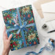 Elegant blue christmas coquette bow stained glass geschenkpapier