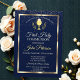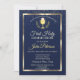 Eleganter goldener Rahmen und Konfetti auf marineblau Hintergrund.