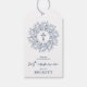 Elegant boy's first communion favor tags feature a blue cross surrounded by a wreath of leaves and your thank you message in chic lettering. MATCHING items available in our collection.