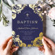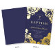 Elegante Navy Blauer Blumenjungen Taufe Gold Foil Einladung.