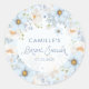 Elegant Blue Floral Bridal Shower Round Sticker