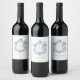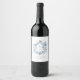 Elegant Blue Floral Crest Monogram Wedding Wine Bottle Label