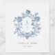 Perfect for wedding receptions, rehearsal dinners, welcome bags, engagement parties, or wedding table décor. The classic blue and white floral crest complements traditional, garden, coastal, and French country wedding themes.