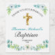 Elegant Blue Floral Gold Cross Baby Taufe Weinetikett