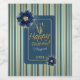 Elegant Blue Floral Gold Streifen Happy Birthday Weinetikett