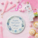 Elegant Blue Floral Happy Birthday Pappteller
