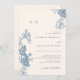 Elegant Blue Floral Lace Ivory Wedding Einladung