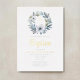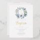 Elegante blaue florale religiöse Junge Tauffoil Einladung.