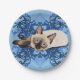 Elegant Blue Floral Siamese Katze Hübsch Feline Pappteller