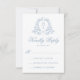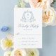 Elegant Blue Floral Wappen Monogram Wedding RSVP Karte