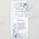 Guide your guests through your ceremony with this elegant blue floral wedding program. Featuring soft watercolor blue flowers and delicate greenery accents, this program perfectly coordinates with your wedding suite. Designed with clarity and style in mind, it includes space for your order of events, wedding party details, and special notes. A sophisticated keepsake that adds a cohesive, polished touch to your wedding day. Fully customizable with your names, wedding date, and ceremony details.