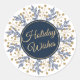 Elegante und moderne Weihnachtsaufkleber "Holiday Wishings" mit marineblau-goldenen Blumenelementen.