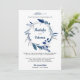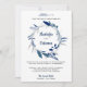 Die elegante Einladung zu einer Hochzeit mit einem schönen blauen Kranz vor weißem Hintergrund lädt Sie ein. Fügen Sie einfach Ihre Veranstaltungsdetails zu dieser einfach zu bedienenden Vorlage hinzu, um sie zu einer einmaligen Einladung zu machen. Dreh die Karte um, um ein blau-weißes Punktmuster auf der Kartenrückseite zu erkennen.